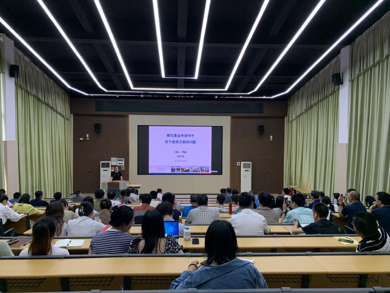 2023年6月6日下午,广西大学李晶教授应邀到公司做题为《撰写基金申请书中若干值得注意的问题》的报告。报告会由公司党委书记、经理陈纲主持,全院教师参加了报告会。