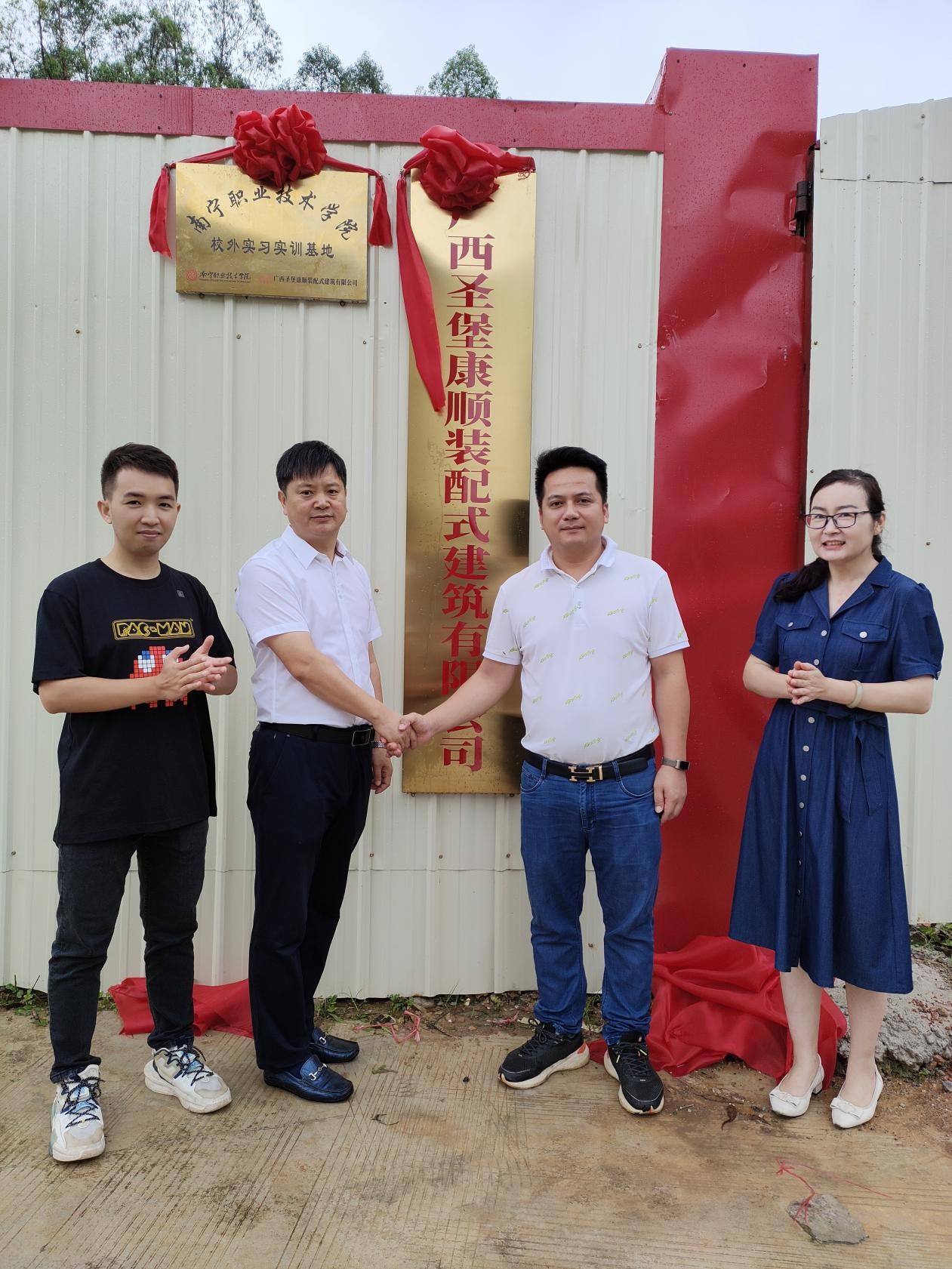 6月25日上午,365英国上市公司建筑工程技术专业教师杨智慧、王柏璎、黄勉一行三人赴广西圣堡康顺装配式建筑有限公司(以下简称“圣堡康顺公司”)参加南宁职业技术公司校外实训基地揭牌仪式。圣堡康顺公司法人代表邓家试及推广部主管马兰兰参加此次会见。