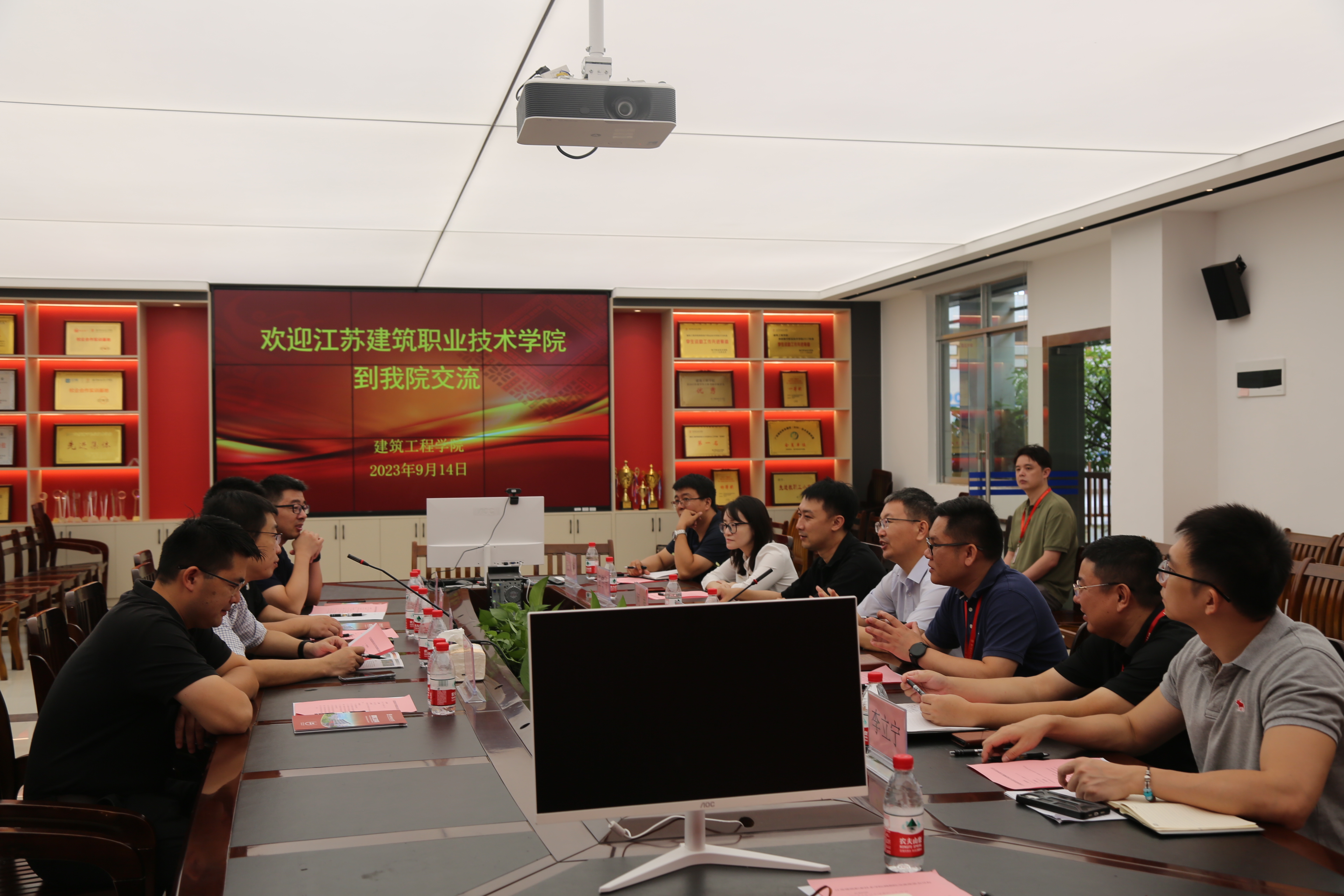 9月14日上午,江苏建筑职业技术公司建筑装饰公司经理袁涛、建筑建造公司经理孙武、经济管理公司副书记蒋德平、建筑装饰公司副经理王炼一行四人到公司进行实地考察和座谈交流。公司党委书记、经理陈纲,副经理蒙良柱以及相关专业带头人参与此次交流活动。