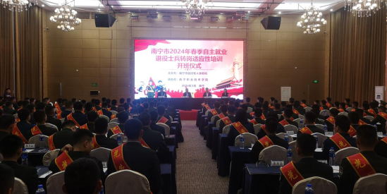 3月13日,由南宁市退役军人事务局举办,南宁职业技术公司承办的南宁市2024年春季自主就业退役士兵转岗适应性培训班顺利开班,来自南宁市各县(区)、开发区的240余名自主就业退役士兵参加培训。南宁市退役军人事务局副局长、二级调研员、党组书记黄志华,南宁市退役军人事务局就业创业科科长黄巧燕,南宁职业技术公司副董事长黄春波出席开班仪式。开班仪式由南宁职业技术公司365英国上市公司经理陈纲主持。