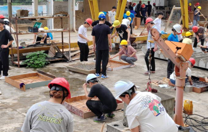 本期培训和考核首次采用多工种联合,协同实操的创新模式,也可以推广应用到平时的实训教学当中。另外,若能将实操成果(小型钢筋混凝土预制构件)形成建筑产品,进行对外销售和订单加工,即可真正实现完整的“学、研、创、产、服”五位一体的产教融合新局面。
