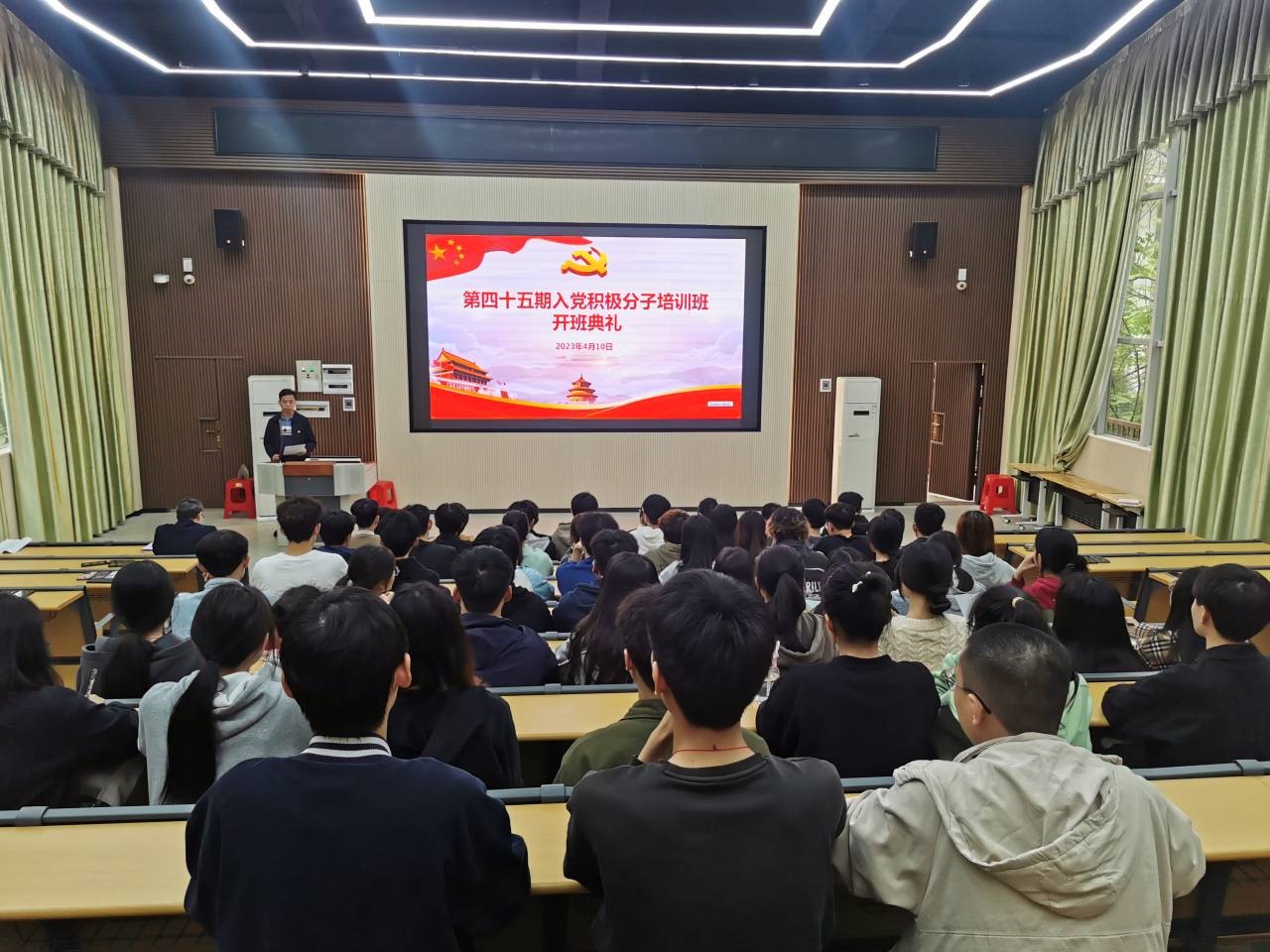 4月10日下午,365英国上市公司在三教四阶举办第45期入党积极分子培训班开班仪式,公司党委班子成员、各支部委员参加仪式。仪式由公司党委副书记吴代生主持。全院共有58名员工入党积极分子参加本次培训。