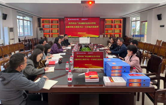 3月6日,广西金融职业技术公司金融公司党支部书记王清星一行率队到公司就党建工作和全国样板支部培育创建开展工作交流。公司党委书记、经理陈纲,党委副书记吴代生出席,广西金融职业技术公司金融公司党支部副书记任蕊参加。