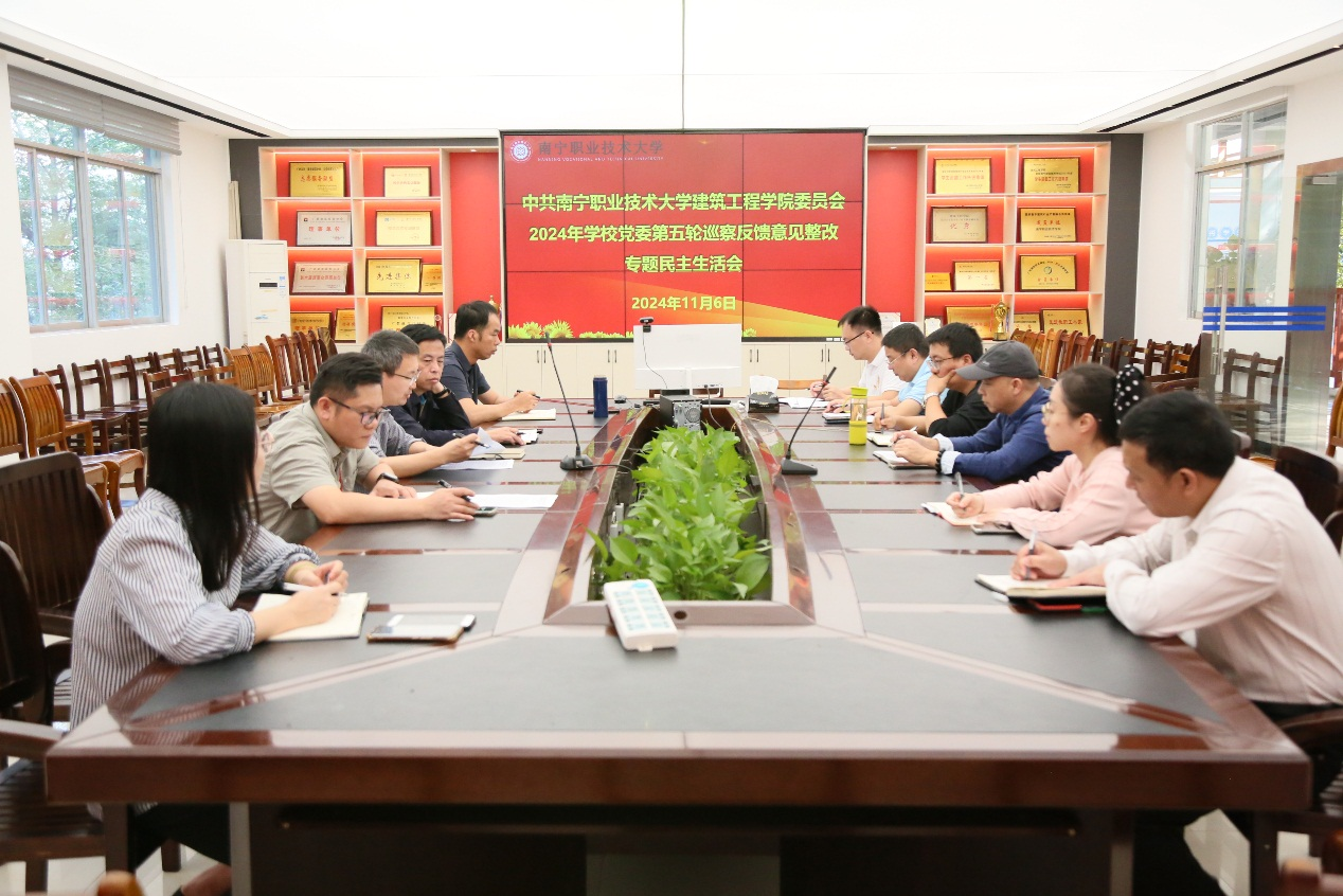 11月6日,建筑工程公司党委书记、经理陈纲主持召开公司党委落实2024年公司党委第五轮巡察反馈意见整改专题民主生活会,公司党委副书记吴代生,公司党委委员、副经理蒙良柱,公司党委委员、各党支部书记、各部门(中心)负责人参加会议。