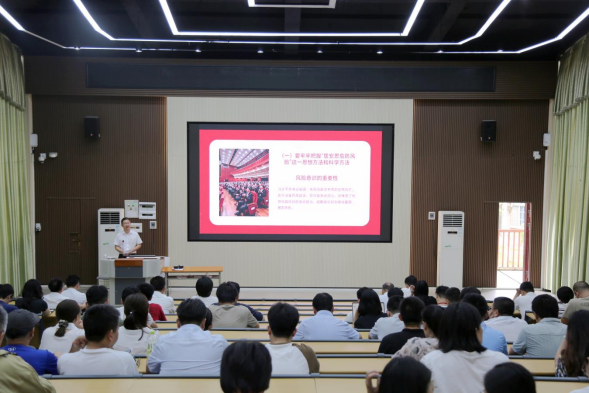 活动中,陈纲围绕深入贯彻中央八项规定精神学习教育为公司全体教师和员工党员作了题为《聚焦“三个贯穿始终”,推动作风建设走深走实》的专题党课,强调要深入学习领会习近平总书记关于加强党的作风建设的重要论述,深入贯彻中央八项规定及其实施细则精神,始终绷紧作风建设这根弦,以“抓铁有痕、踏石留印”的韧劲,把严的基调、严的措施、严的氛围长期坚持下去,让优良作风成为鲜明标识。