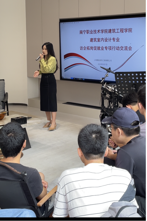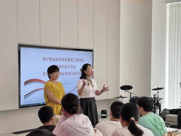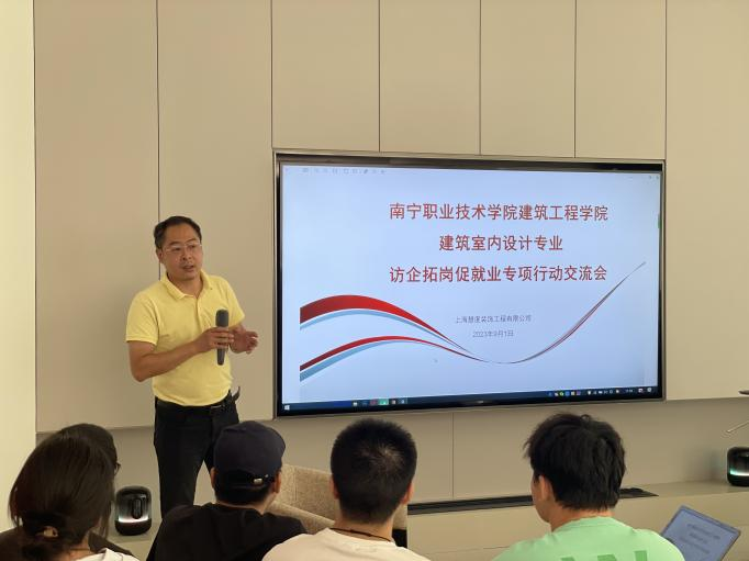 根据《南宁职业技术公司访企拓岗促就业专项行动工作方案》文件的精神,更好的为社会培养高素质、高技能的应用型人才,9月7日建筑室内设计专业团队教师谢梅俏、何谊带领大学三年级一行42名室内设计专业员工前往校企合作企业上海慧度装饰工程有限公司--慧度智宅HUAWEI智慧住宅装饰体验展厅开展访企拓岗促就业专项行动工作。
