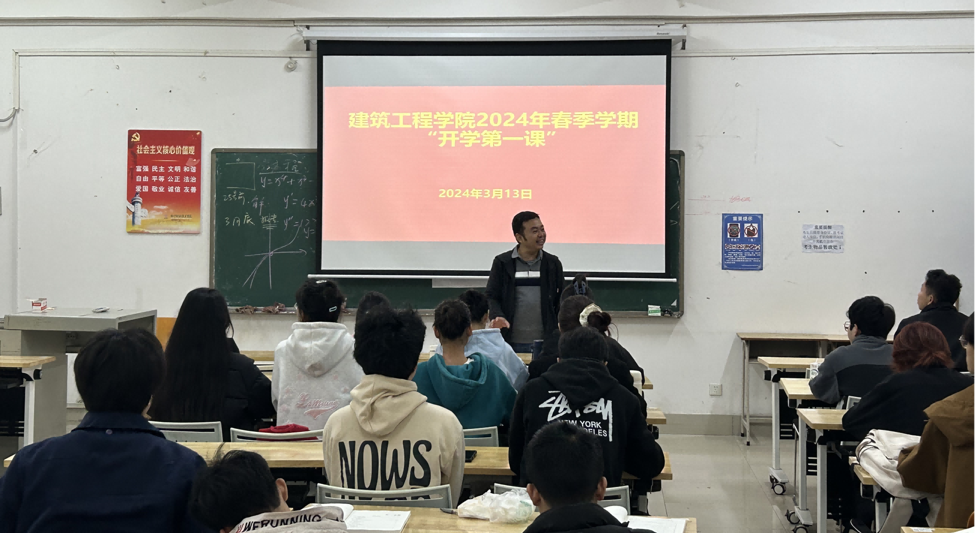 新学期伊始,为扎实做好新学期员工教育管理服务工作,帮助同学们尽快适应新学期生活,3月12日至13日,建筑工程公司党委书记、经理陈纲、党委副书记吴代生、各班班主任老师成功讲授了“开学第一课”。
