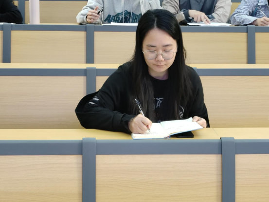 (图为:团委副书记任静进行记录、点评)