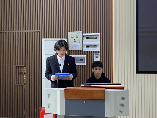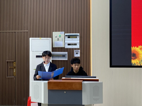 (图为:黄子俊同学进行述职)