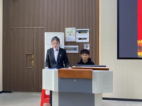 (图为:庞雨婷同学进行述职)