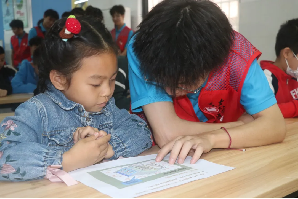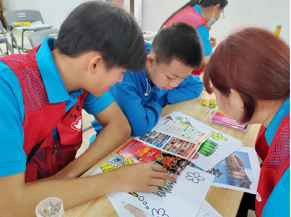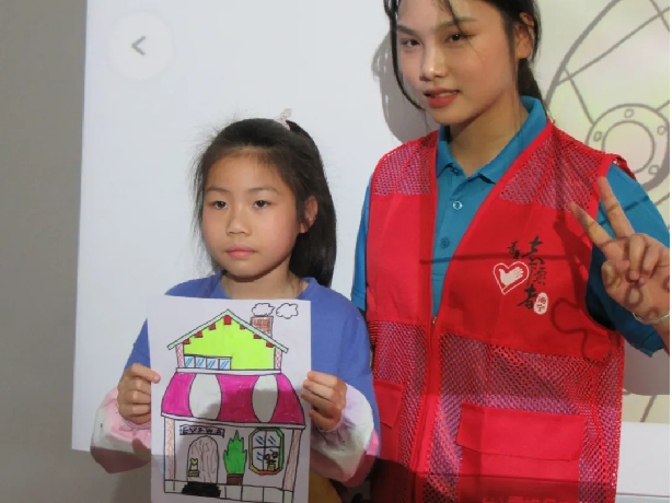 在教小朋友们认识建筑物基本构造和绘画中国传统建筑环节,志愿者们通过与小朋友们的热情互动讲中国建筑文化、画中国建筑文化,发扬了创新创造精神,不仅丰富了小朋友的课后知识,也大大提升了员工志愿者们的社会实践能力。其次,志愿者们在传播房屋的建筑构造知识的同时穿插了消防安全知识,通过对消防安全手册的指导阅读增强了小朋友们对消防安全的认识,让每个小朋友都做到安全第一位,消防记心间。