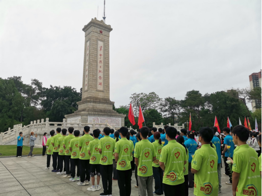 随后,南宁市星期六爱心公益志愿者协会代表发表致辞,阐述此次活动的意义,表达对革命先烈的无限缅怀,并带领党员重温入党誓词,引领党团员、志愿者们向革命烈士纪念碑宣誓。全体人员一起合唱歌曲《没有共产党就没有新中国》,缅怀革命先烈,追忆往思,表达爱党爱国之情。