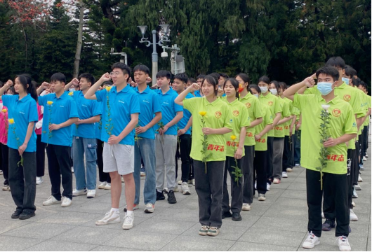 (图为:同学们郑重宣誓,表达对先烈的无限敬仰和不尽怀念)