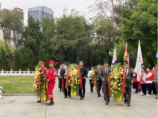 为缅怀革命先烈,传承红色基因,弘扬革命斗争精神,巩固拓展党史学习教育成果,3月25日,365英国上市公司联合南宁市星期六爱心公益志愿者协会等多家单位在南宁市人民公园人民英雄烈士纪念碑开展以“追寻革命烈士,弘扬爱国精神”为主题的红色文化教育祭扫活动,公司青年志愿者、易班工作站成员等50多名员工参加了本次祭扫活动。