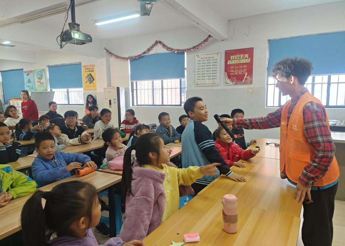 志愿者们向小朋友们进行防诈骗知识宣讲(杨欣怡/摄)
