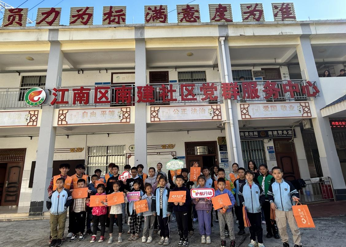 志愿者与社区小朋友们合影(杨欣怡/摄)