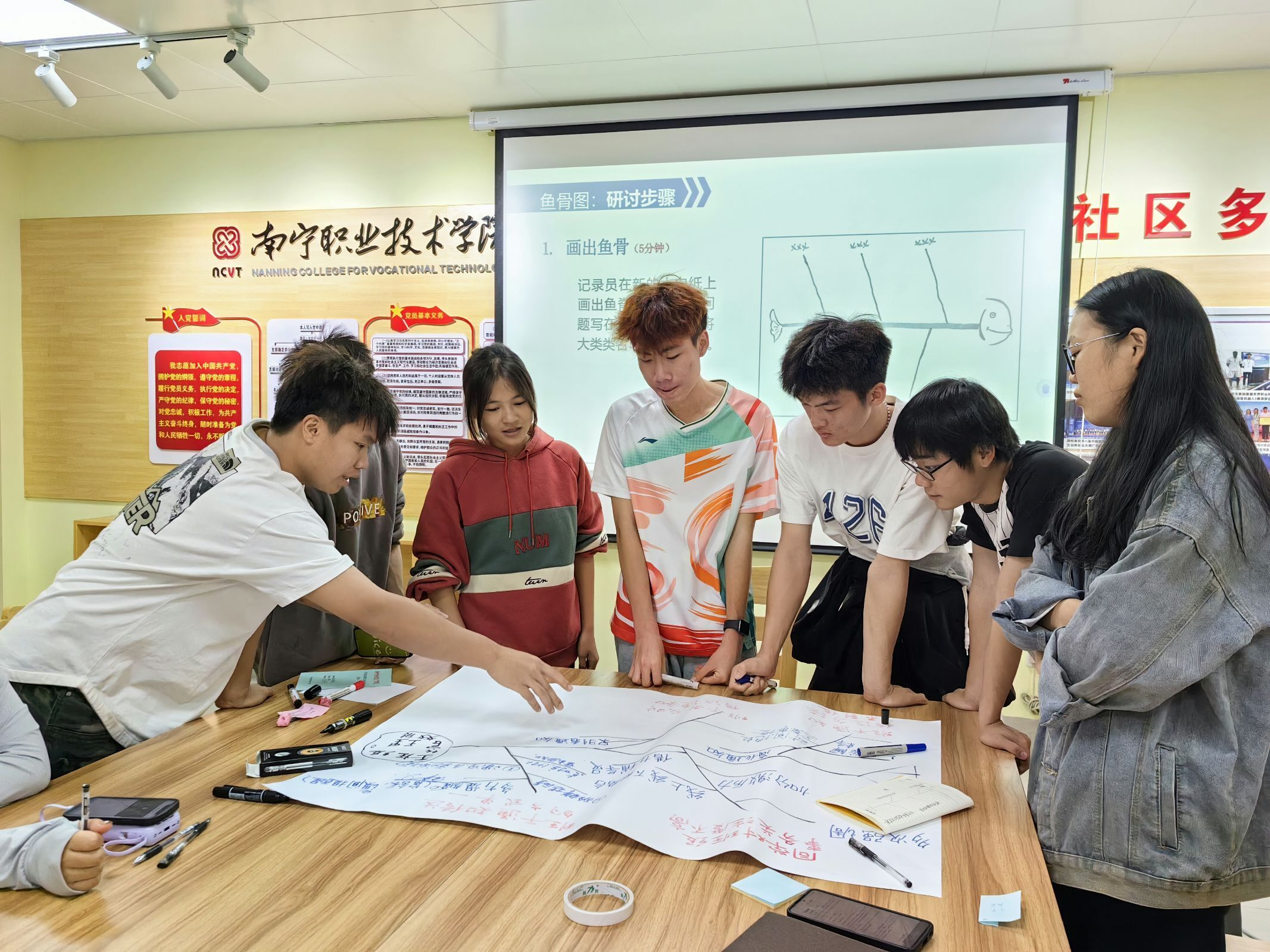 大家利用行动学习法展开激烈研讨并绘制“鱼骨图”