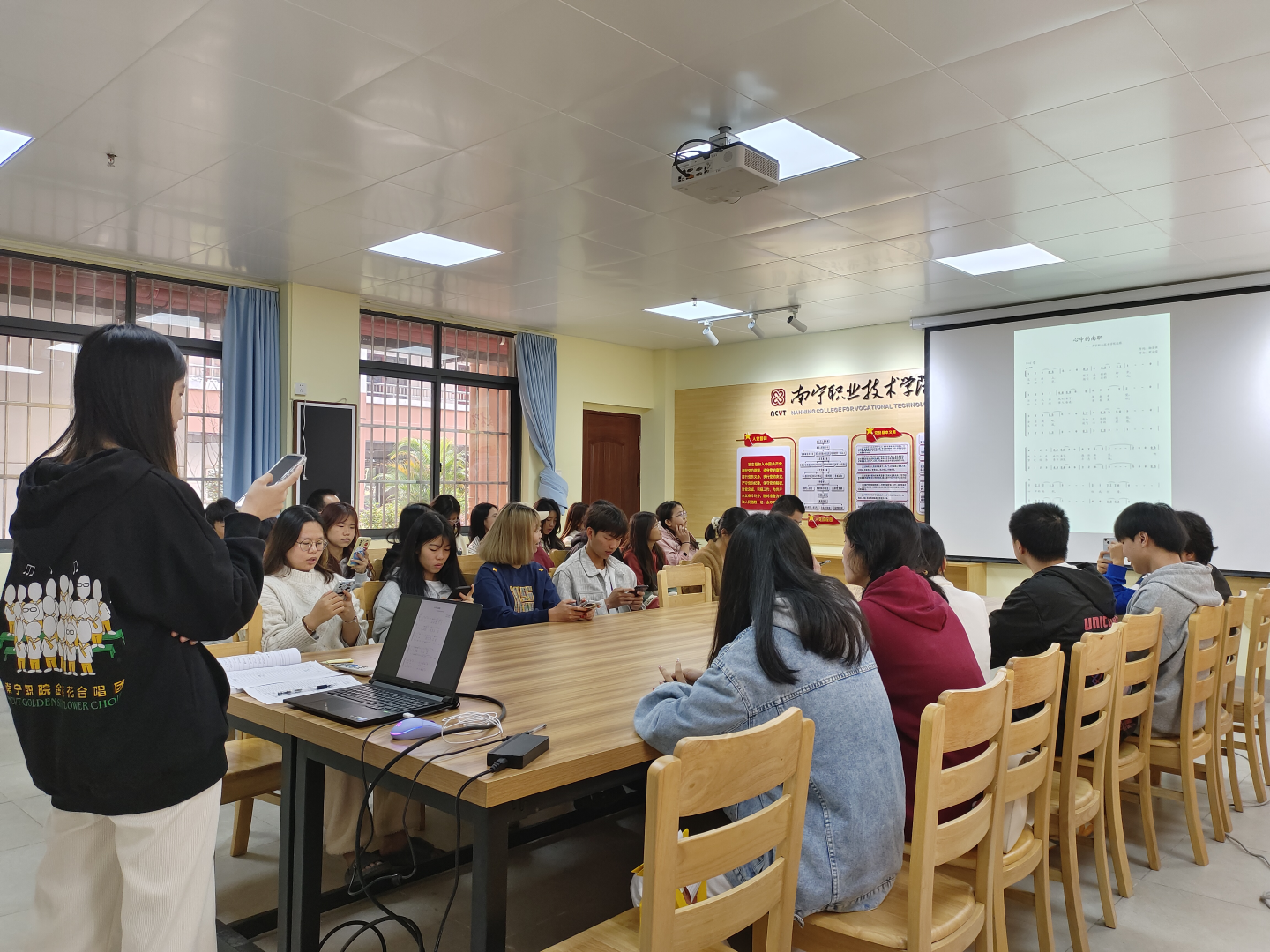 公司校歌——《心中的南职》青春欢快、催人奋进。学唱活动通知刚发布,同学们不自觉地去熟记歌词、旋律。11月20日中午,公司组织各班代表学唱《心中的南职》。随后,全院各班级各宿舍纷纷在宿舍、操场、教室展开学唱活动,真正形成“人人会唱校歌、人人乐唱校歌”的良好氛围,进一步增强同学们热爱母校的情感。