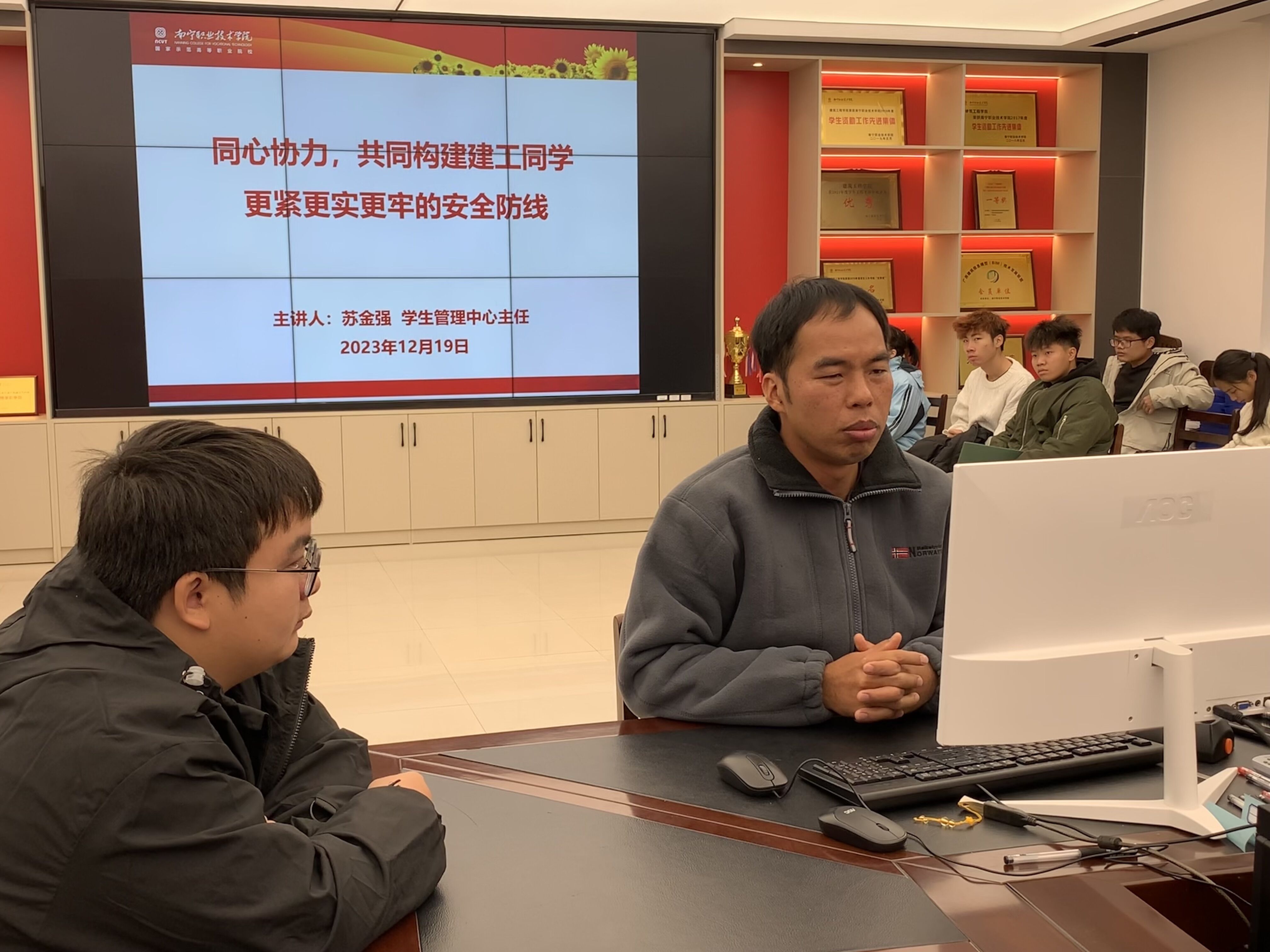 为同心协力,共同构建建工员工安全防线,12月19日中午,公司在三教203会议室举办了2023年秋季学期安全信息员培训班,培训由员工管理中心主任苏金强主讲,公司各班共计60多名员工安全信息员参加了培训。