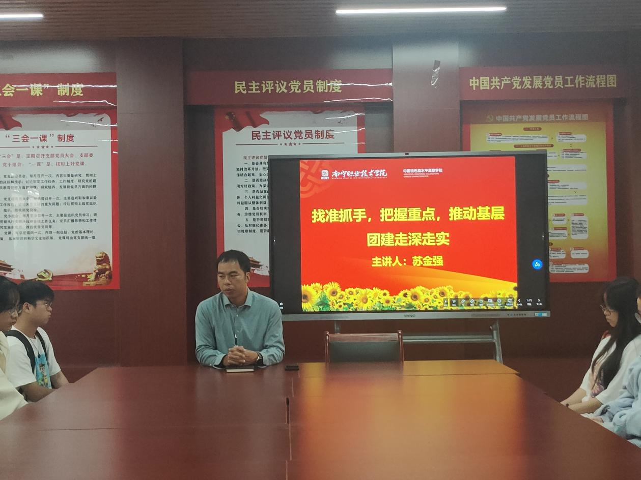 为细化对班级团支部建设的指导,发挥“三会两制一课”作用,指导班级团支部建立团员教育、理论学习、团日活动、班团干例会等常态化机制,推动基层团建走深走实,2023年12月14日中午,团委书记苏金强以“找准抓手,把握重点,推动基层团建走深走实”为主题向各班团支书开展讲座。