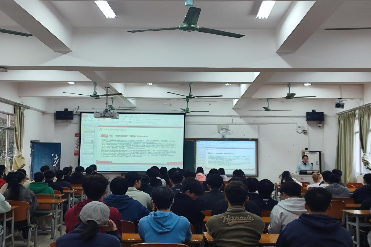任静老师以在党的领导下走向光明征程、建设美好家园、创造世纪辉煌和圆梦伟大复兴等四个阶段展开,将从1922年至今百年党领导下的青年运动史做了深入浅出的回顾和诠释。她详细讲授了每个阶段、历史时期青年在党的领导下的作为,特别讲述了“一二·九”运动、“到延安去”、青年突击队、“北大荒精神”等等,将一个个鲜活、生动的人物和事迹一一呈现,让同学们对百年的奋进历程了解得更加深入,更加坚定了要坚持党的领导,更加坚定了要高扬爱国主义旗帜,更加坚定了要始终与实践相结合,传承奋斗精神。