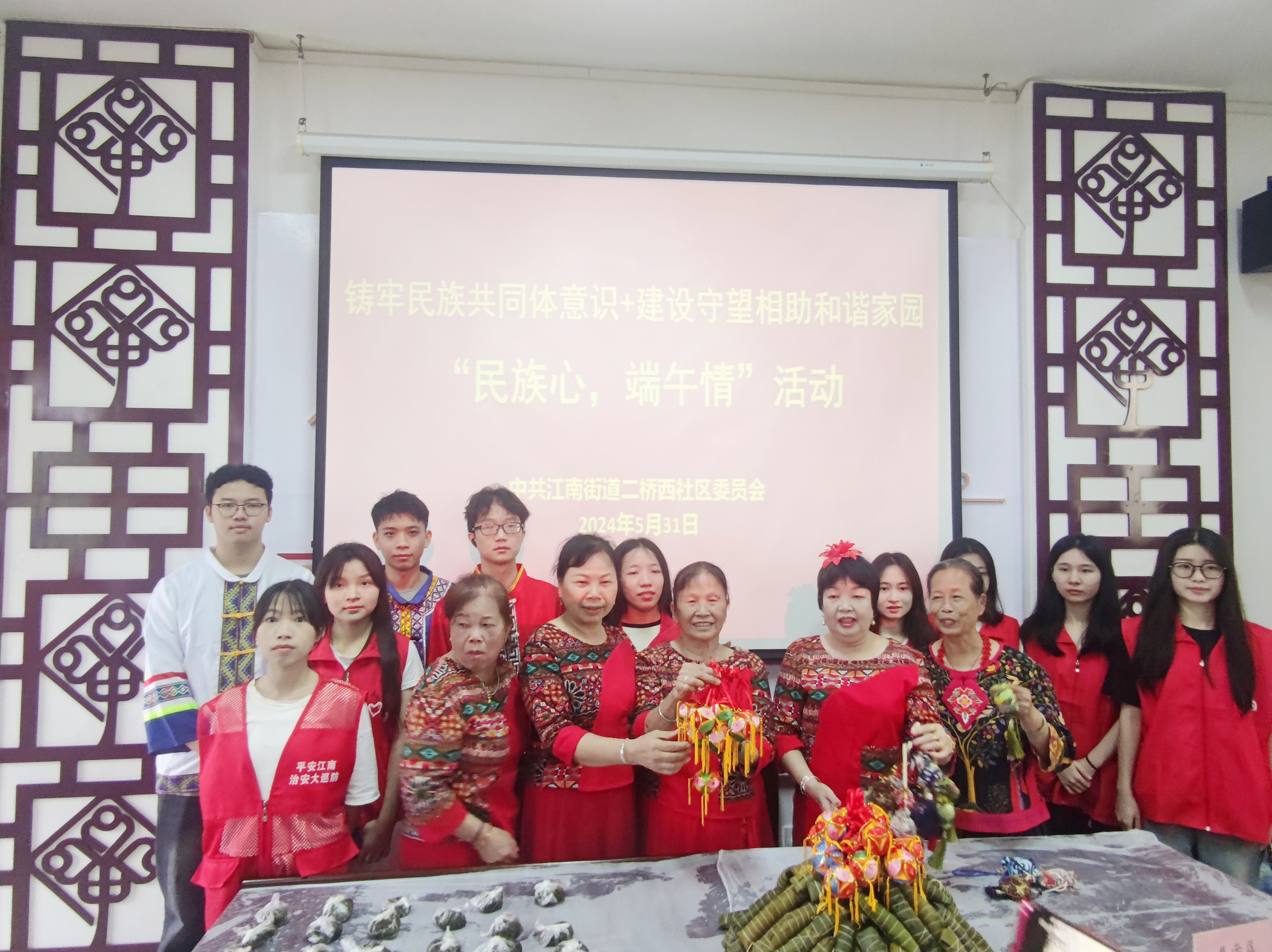 2024年5月31日,22室内3班团支部走进二桥西社区开展端午主题活动。社区作人员提前准备好了糯米、糯叶等材料,同学们向社区居民学习包南宁凉粽,边动手实践边拉着家常,现场其乐融融,充满欢声笑语。