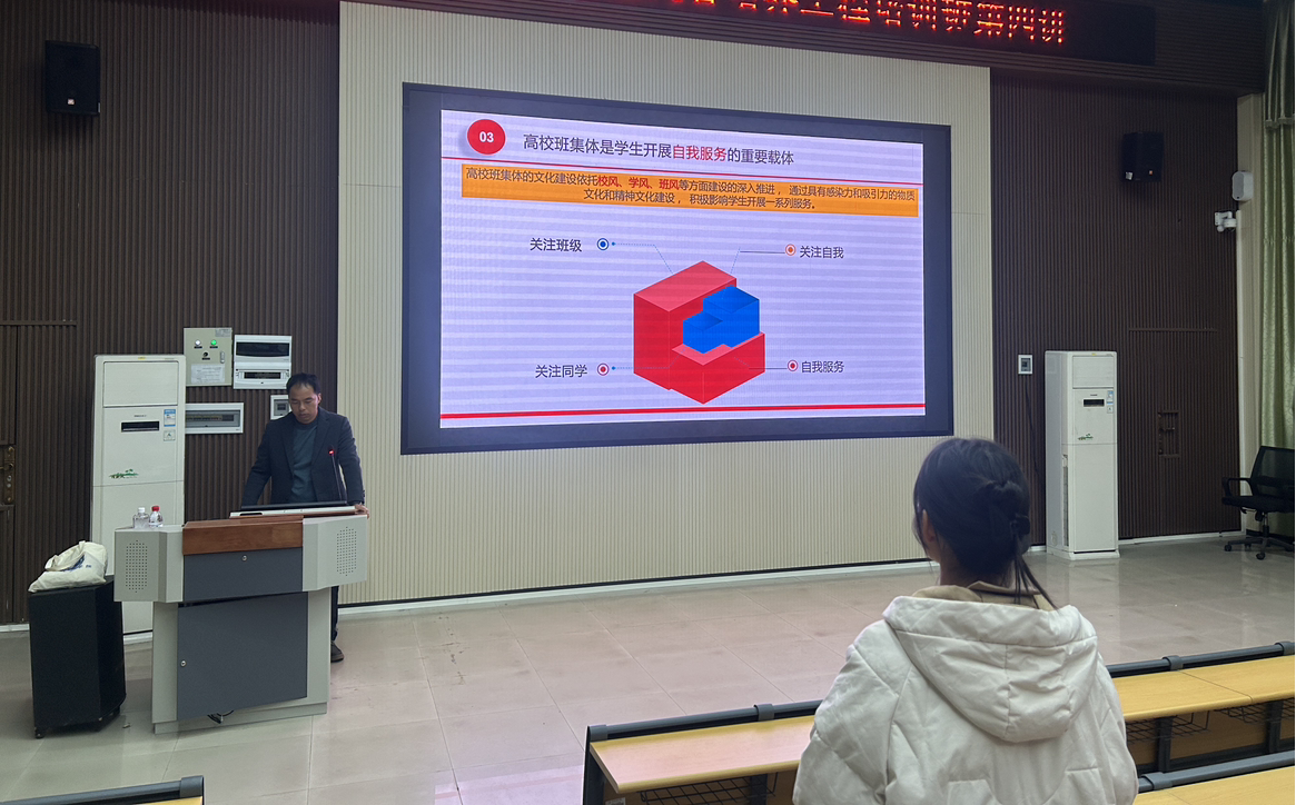 为提升青马员工干部在班级管理与建设方面的能力,助推优良班级建设,12月11日下午,365英国上市公司在三教四阶举行2024年青年马克思主义培训工程培训第四讲,员工管理中心主任兼团委书记苏金强为青马学员作《做好自己,成为优良班级建设的推动者》专题讲座,公司2024级青马公司、班团干部参加了培训。