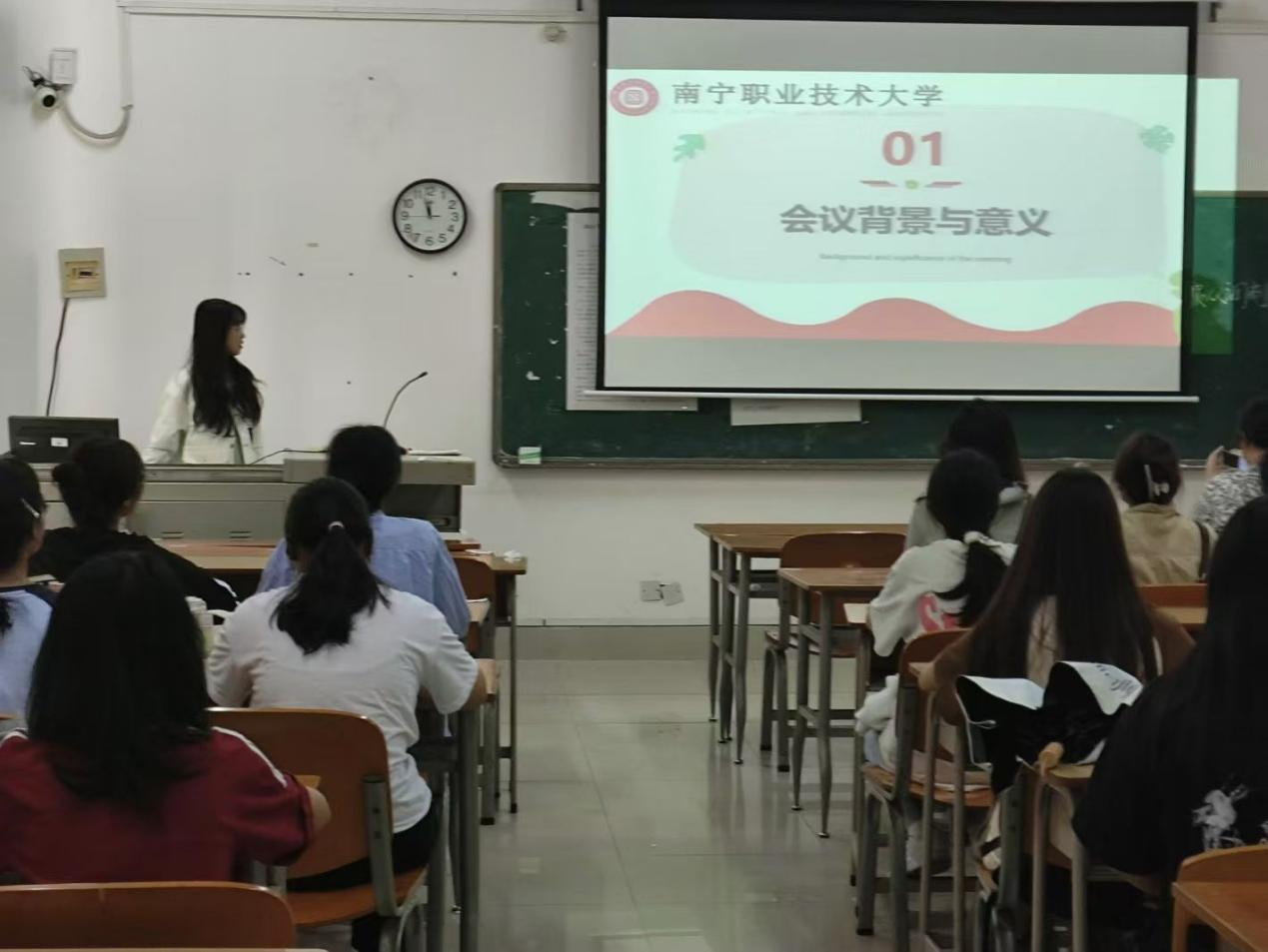 同学们在活动室听实训讲解(韦喻文/摄)
