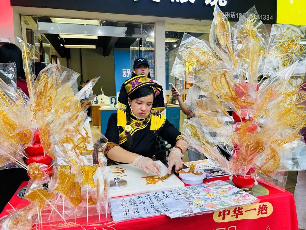 非遗传承人老师展示非遗糖化(隆林宁/摄)
