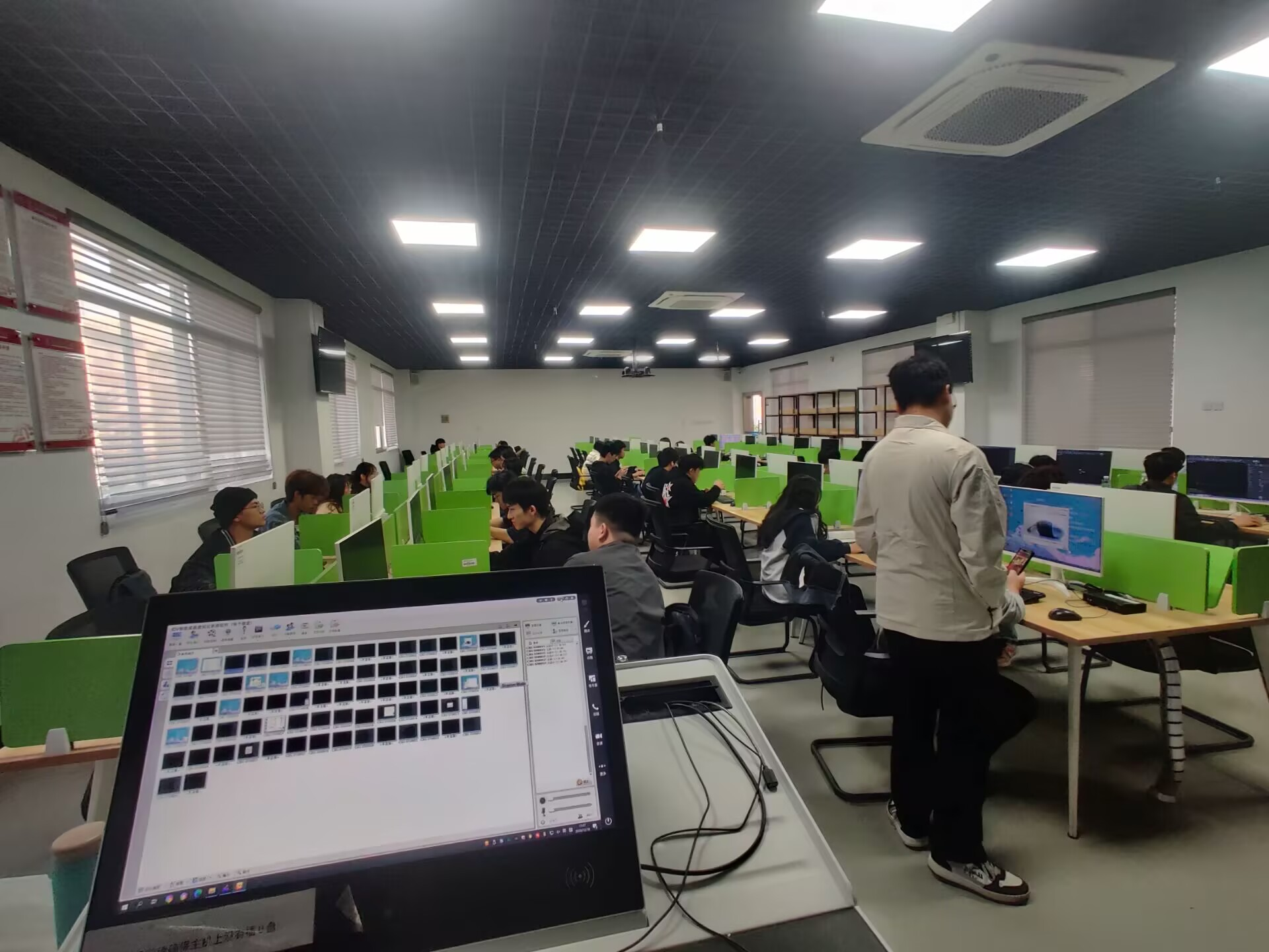 同学们正在安装并使用3D.Max进行建模(唐培元/摄)