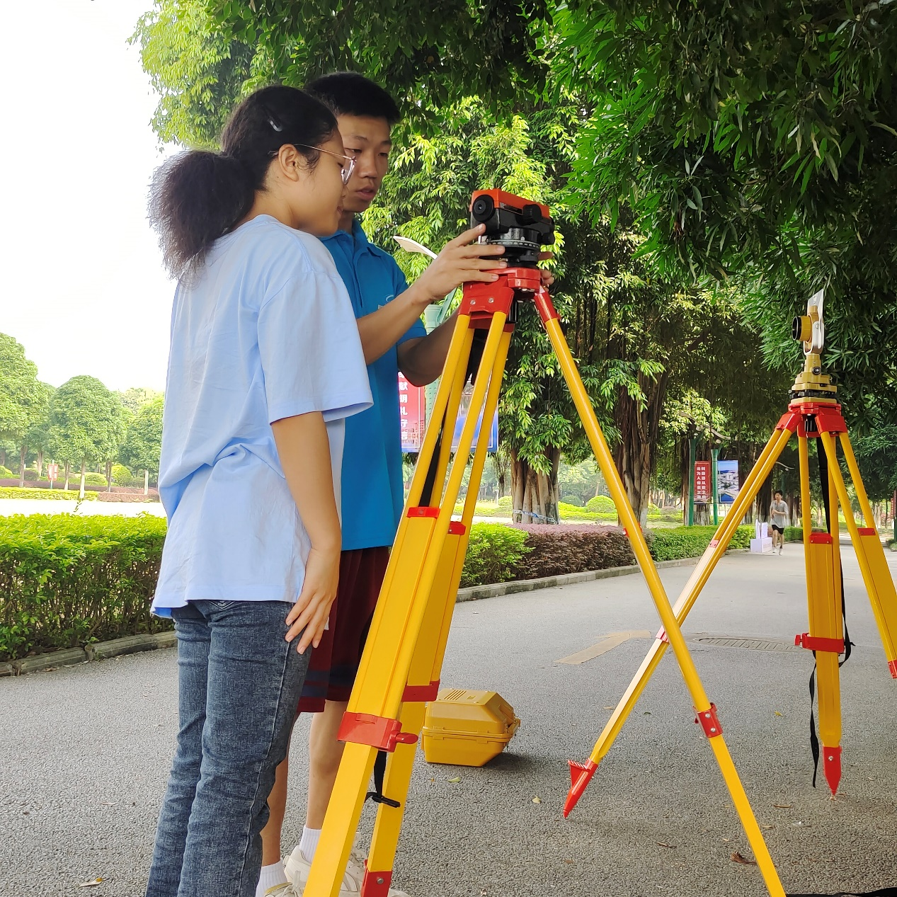 建筑测量协会10月19日上午9:00,建筑测量协会在金葵广场举行 “我为同学办件事——水准测量培训活动”。会长郭华康组织活动,对不同专业的参与同学分组后,由曾获奖的翟辉和陈业烨进行水准测量理论讲解与示范,并带领实操教学训练。各小组在核心骨干一对一指导下实践操作调平仪器,活动圆满结束,同学们更好地理解和运用了测量专业知识,为公司选拔技能大赛选手奠定基础。