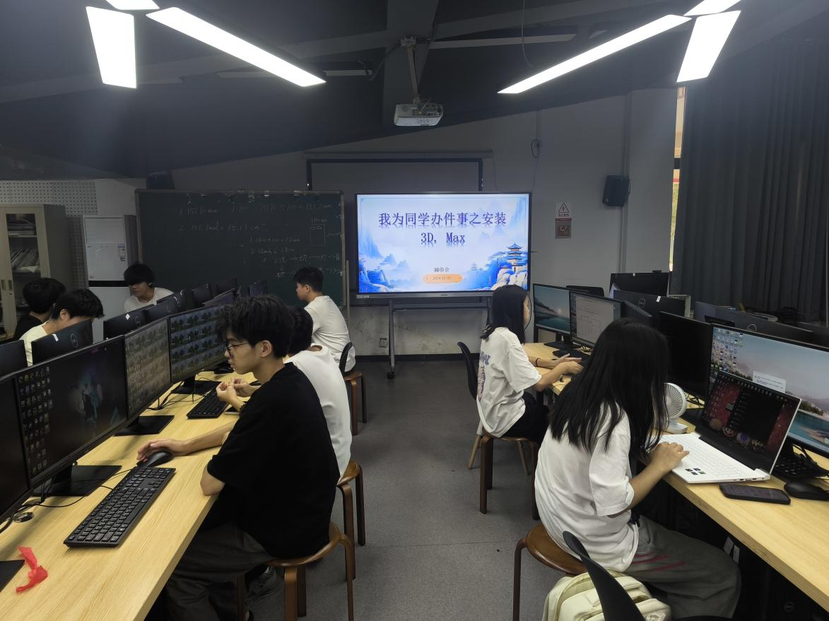 3D 协会:10 月 15 日,3D 协会在 3 教架空层装配式协调创新中心开展 3D.Max专业软件安装活动,50位成员参与其中。协会理事详细介绍3D.Max在设计领域的重要性,发送并讲解安装步骤,对有困难的同学一对一帮扶,确保软件成功安装。安装后还展示操作界面、讲解功能用途,并布置实践任务,让同学们学会模型变换、材质创建和灯光设置等操作,有效提升了同学们对 3D 软件的认知与建模水平。