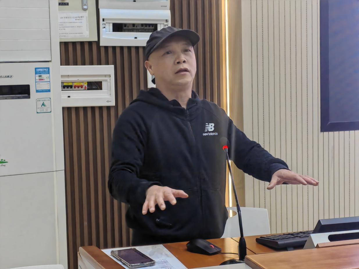实训中心主任梁炫强调实训设备维护、教室清洁要求(曾顺/摄)