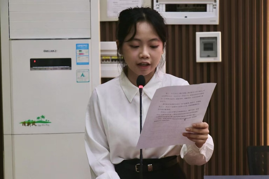 2025年“青马工程”培训班学员代表林茵茵发言。她表示在今后的培训中,将珍惜学习机会,主动钻研理论知识,积极参与实践活动,努力把马克思主义的立场、观点、方法运用到学习和生活中,以实际行动践行青年责任。