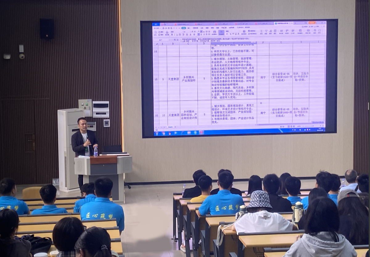 陈纲对天壹集团来校宣讲表示欢迎,并对前来参与宣讲的员工予以激励。天壹集团总经理黄硕英对公司的构架进行介绍,着重对扶持三农、乡村振兴、跨境电商、地产营销、引导退役军人就业与创业等内容进行宣讲,宣讲结束后,天壹集团为公司员工提供包含房产经纪人、乡村振兴项目导师、乡村振兴园林规划、产业规划设计师等150多个高质量的工作岗位。