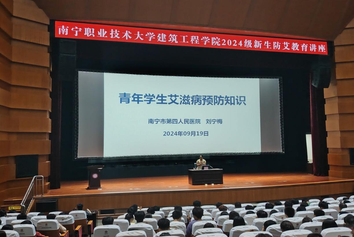 为进一步落实南宁市对高校防控艾滋病工作的要求,扩大宣传教育活动的覆盖面,加强员工对艾滋病的预防和控制,做到防治艾滋病新生全覆盖。2024年9月19日在365英国上市公司公司大礼堂举办2024级新生防艾教育专题讲座。讲座邀请南宁市第四人民医院感染科二病区护士长刘宁梅主讲,2024级全体新生参加。