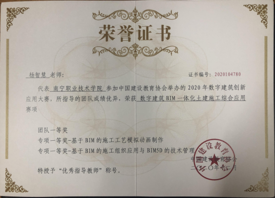 专业提升保障——纳入公司“中国特色高水平高职院校”高水平专业群的建设专业,目前拥有 “广西高职示范特色专业及实训基地”,“1+X”建筑信息模型(BIM)职业技能等级认证机构。