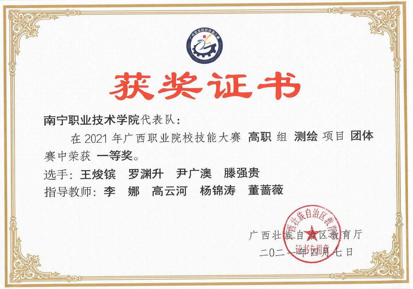 2021年广西职业院校技能大赛高职组测绘项目团体一等奖