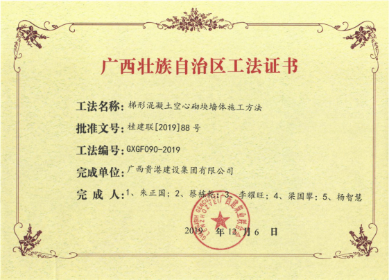 2019年广西壮族自治区级工法