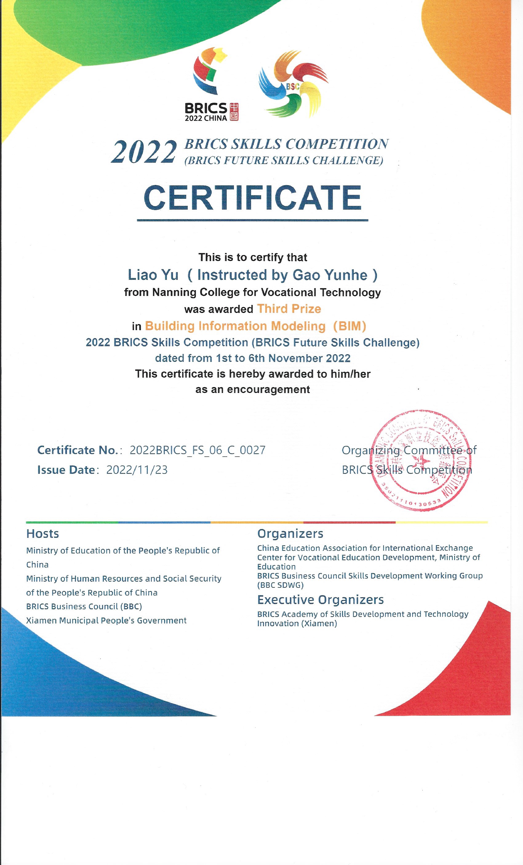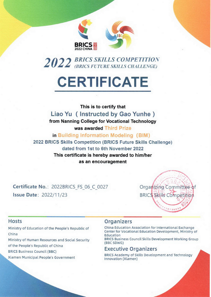 2022年金砖技能竞赛三等奖