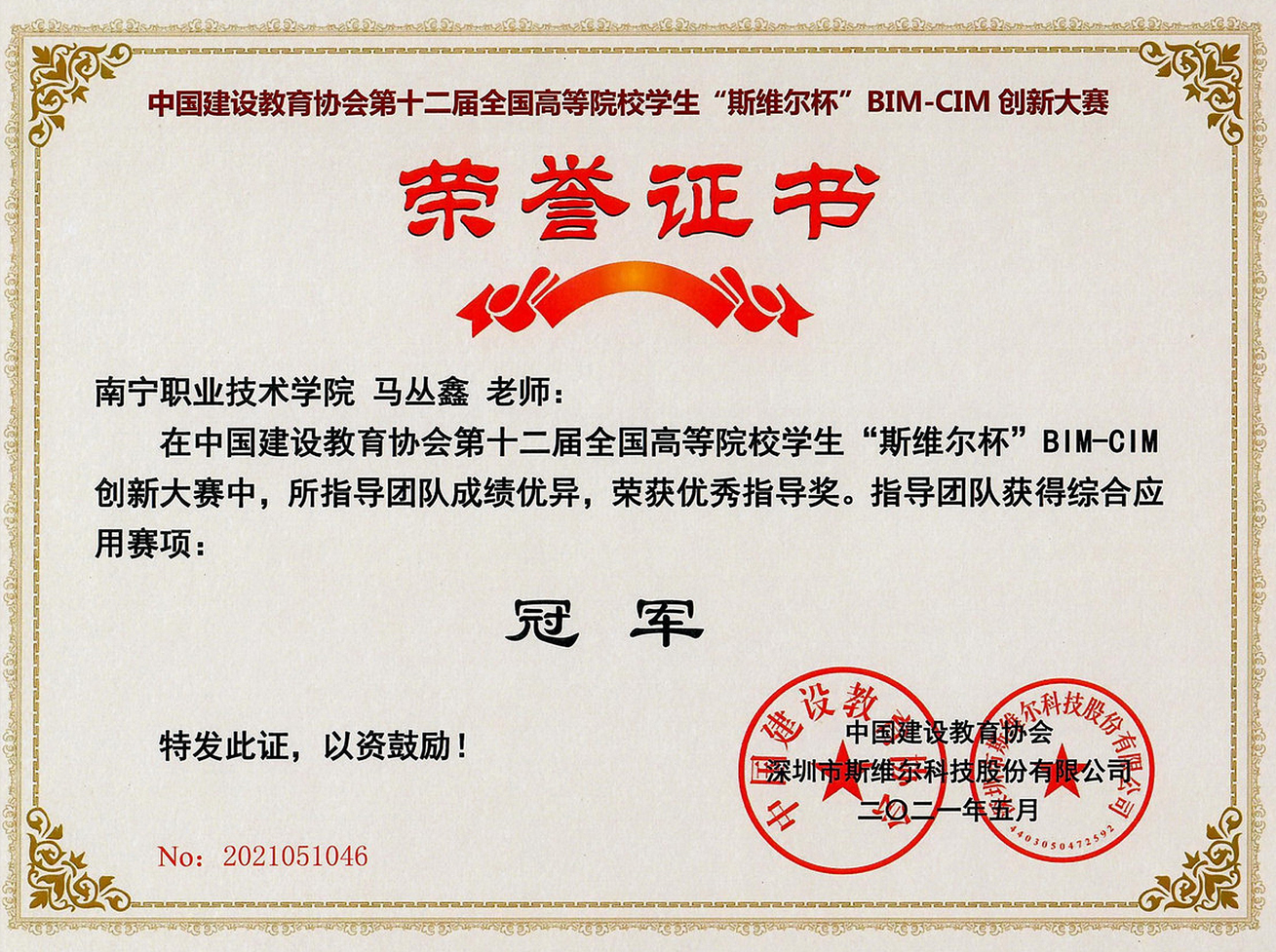 2021年全国第十二届全国高等院校员工“斯维尔杯”BIM-CIM创新大赛团队冠军