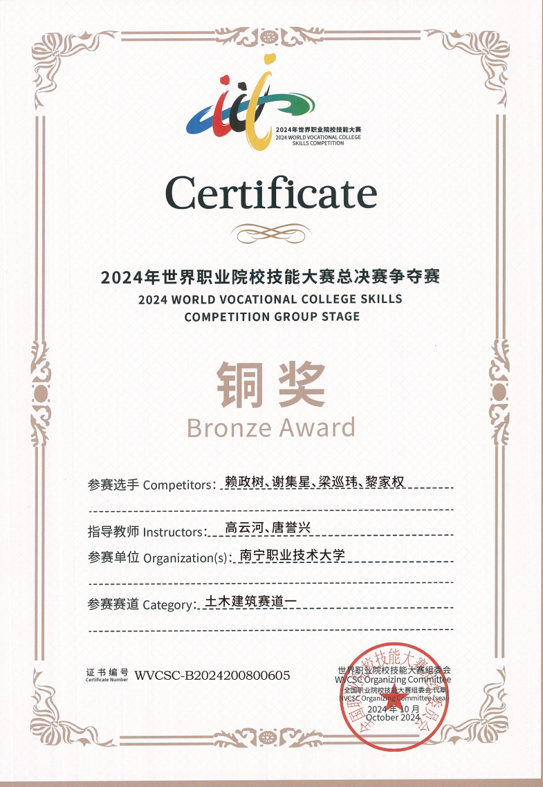 2024年在上海举办的世界职业院校技能大赛获铜奖
