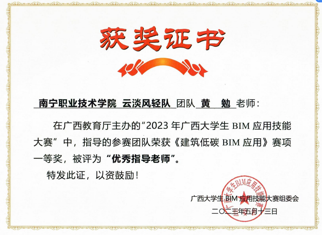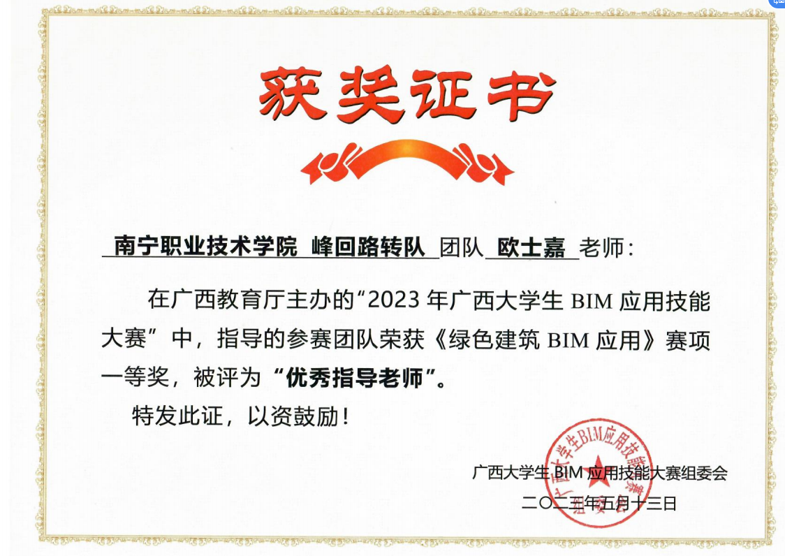 广西教育厅主办的“2023年广西老员工BM应用技能大赛”中获奖