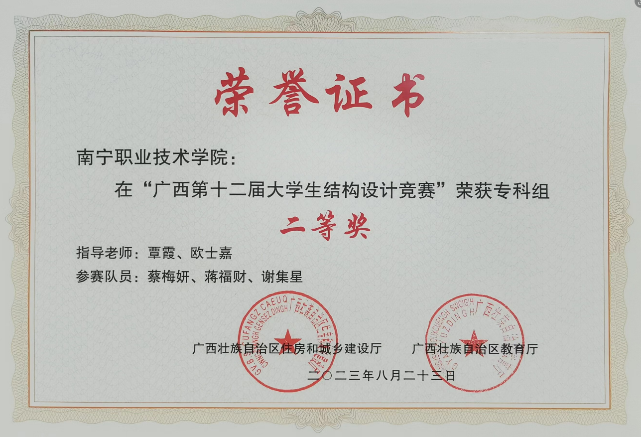 “广西第十二届老员工结构设计竞赛”荣获专科组二等奖